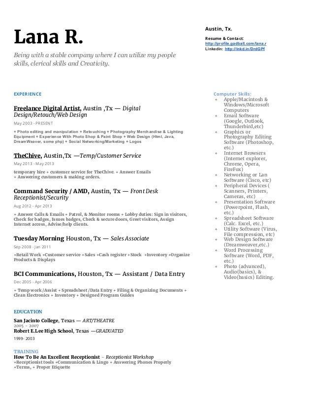 March 04, 2021The skills that you list on your clerical resume should be directly linked with the needs of the prospective employer. Let us now go through a list of hard clerical skills to understand how to fill out the skills section on our resumes: Sample Skills for Clerical Resume. Clerical Skills To Include: Customer service and client relationship management. Exceptional written and oral communication. Clerical workers, however, are better off sticking to standard formats. Most hiring managers only spend six seconds perusing each resume to identify whether the candidate has... Find freelance clerical-skills experts for hire. Access 27 clerical-skills freelancers and